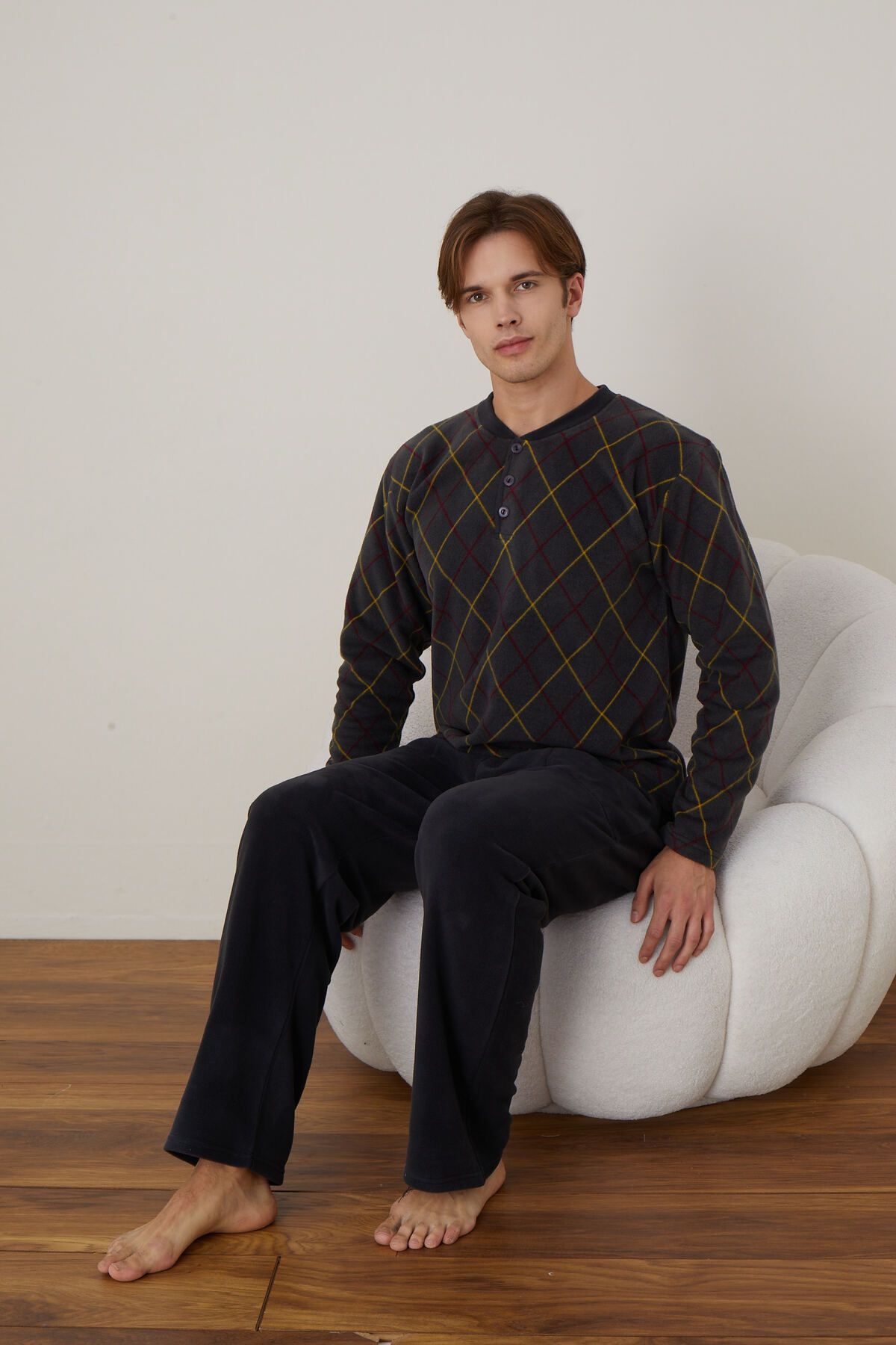 Erkek Uzun Kollu Polar Kışlık Sıcak Tutan Pijama Takımı YENİ SEZON ANTRASİT-2XL