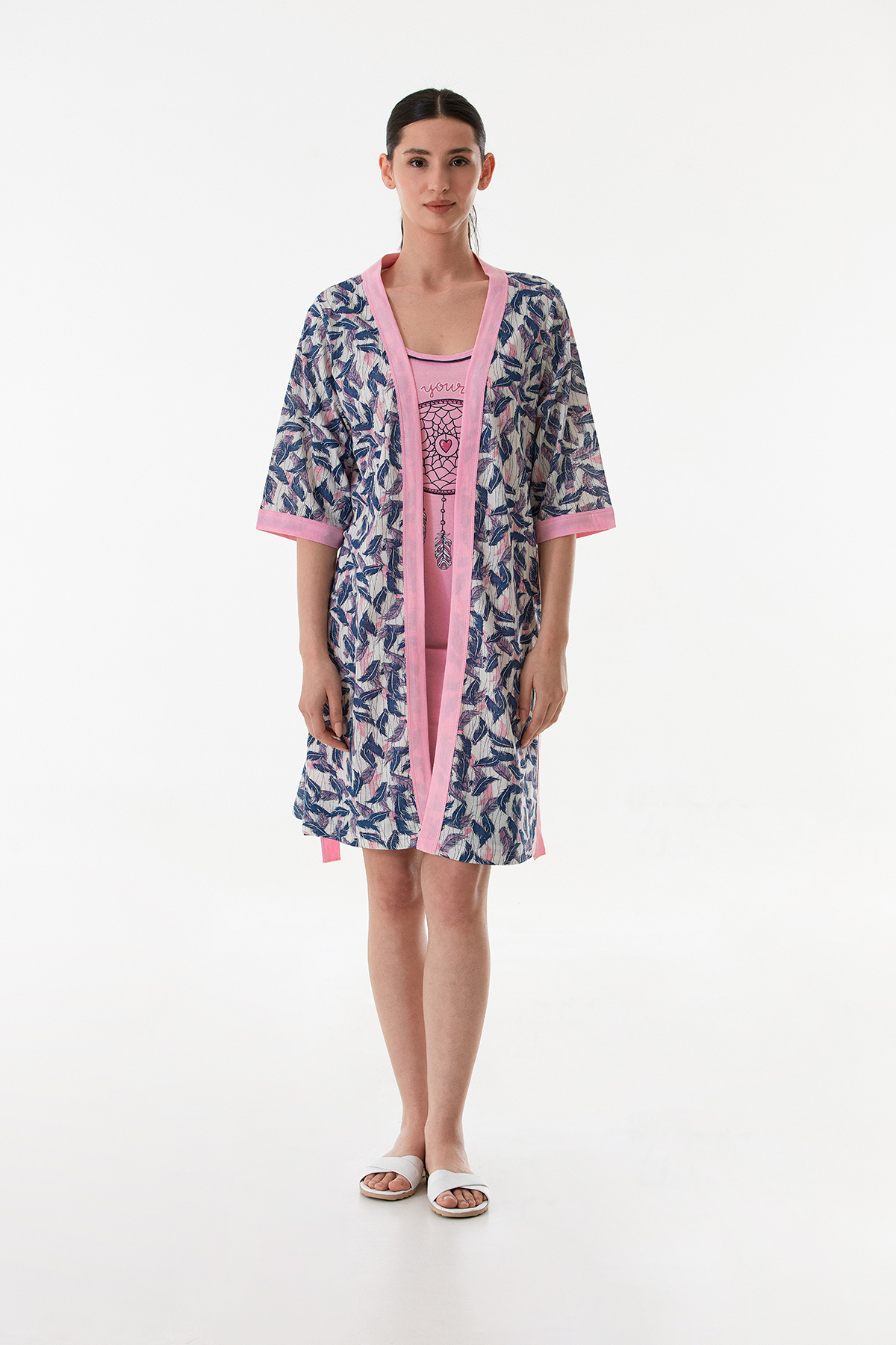 Kadın 2 li Sabahlıklı PenyeElbise Gecelik Takımı PEMBE-L